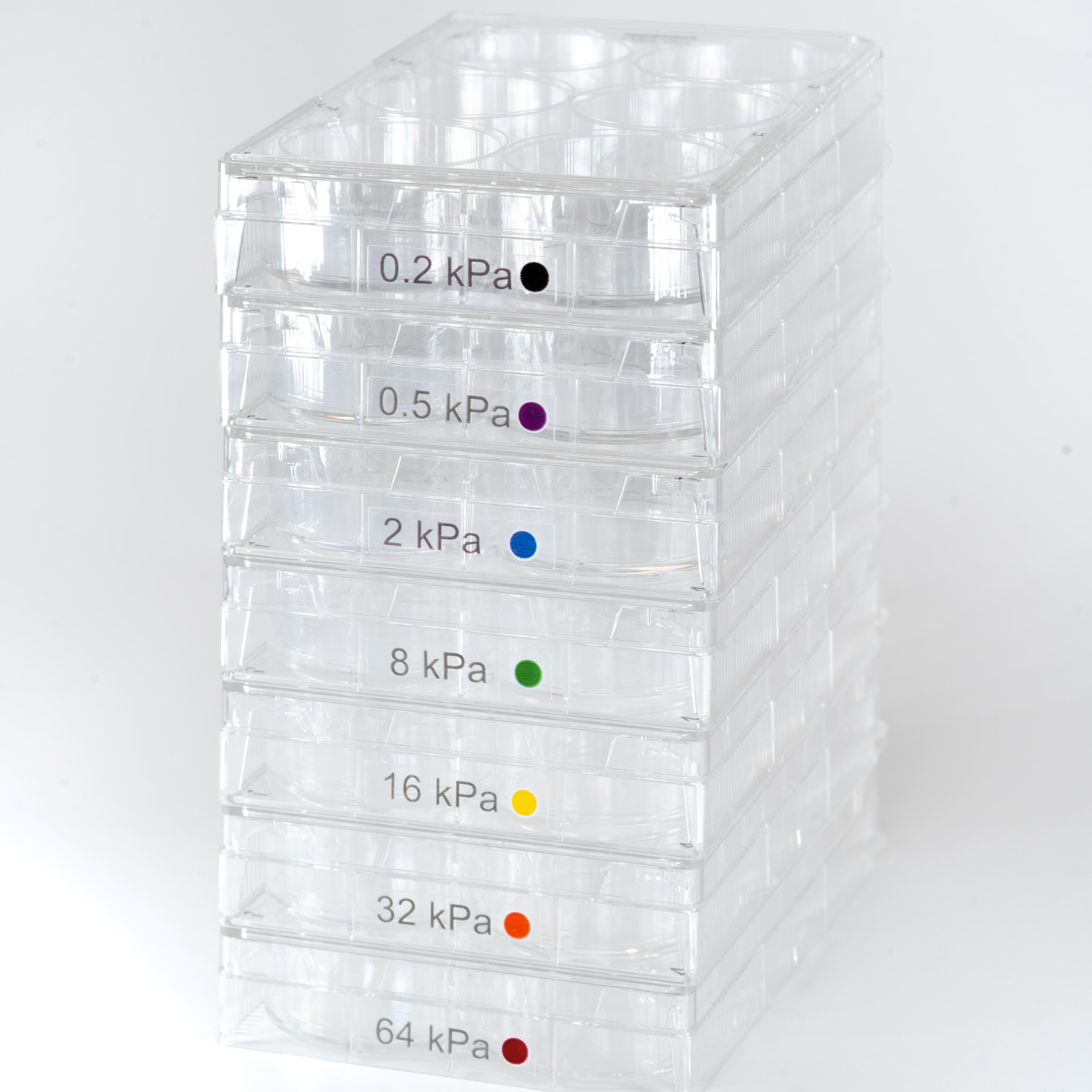 This kit provides you with 1 plate of each stiffness, allowing you to test how your cells behave across a broad range of physiologically relevant stiffness.